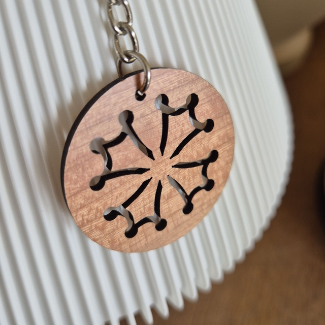 Affiche fièrement tes origines occitanes avec ce magnifique porte-clés en bois représentant la croix occitane, symbole emblématique de la région.